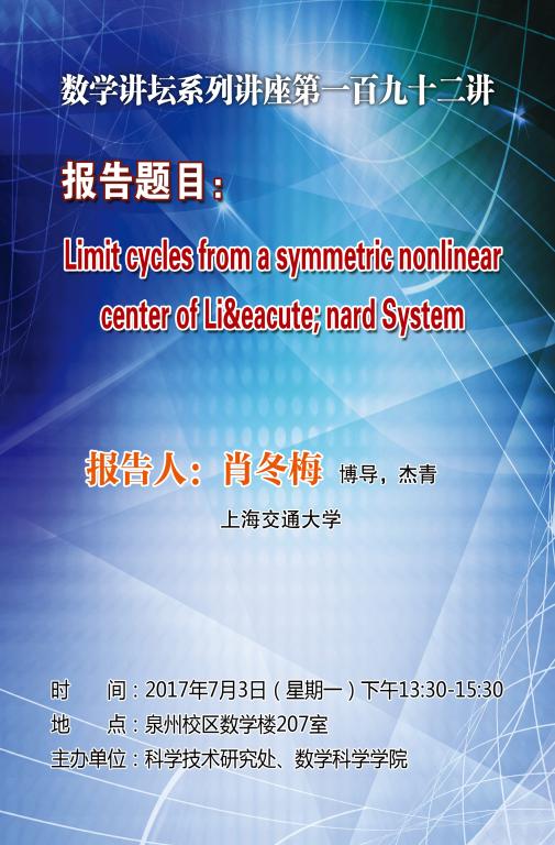 上一条:Positive topological entropy and Δ-weakly mixing sets----中国科学技术大学黄文教授(博导,杰青) 下一条:切触动力系统和Hamilton-Jacobi方程---复旦大学严军教授(博导,杰青)