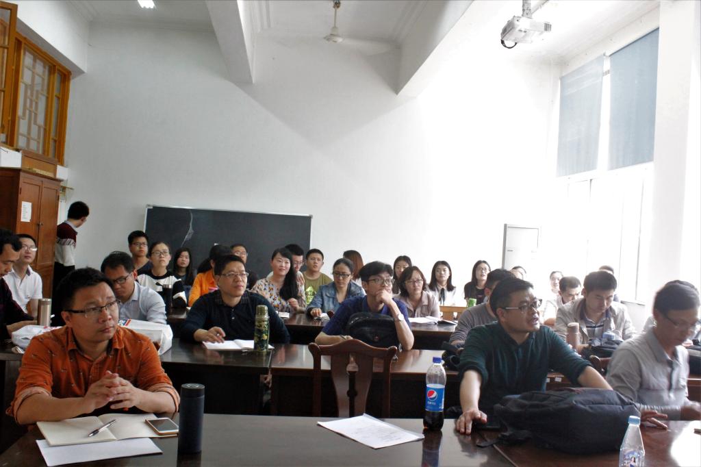 此次报告的主要内容为分数阶微积分及微分方程简介。程金发教授从Gamma函数与Beta函数等几个特殊函数切入,提出了一种新的分数阶差分、分数阶和分,以及分数阶差分方程的定义。讲座后程教授并就教师提出的问题进行详细解答。