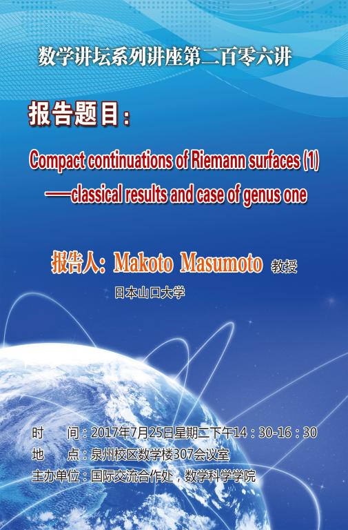 上一条:Compact continuations of Riemann surfaces(2)--case of higher genus----日本山口大学Makoto Masumoto教授 下一条:Progress and problems on strong-edge-coloring of graphs----美国威廉玛丽学院喻革新教授