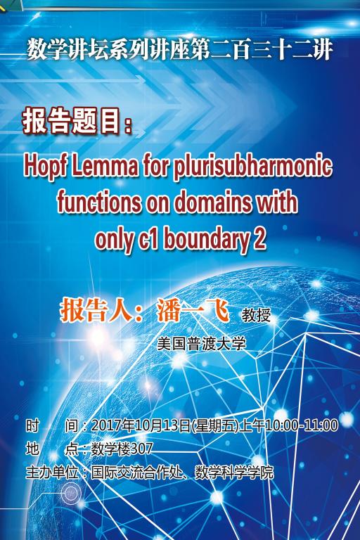 上一条:Center of Mass Distribution of the Jacobi Unitary Ensembles:Painleve V,and Asymptotic expansions----澳门大学陈阳教授 下一条:Hopf Lemma for plurisubharmonic functions on domains with only c1 boundary 1---美国普渡大学潘一飞教授