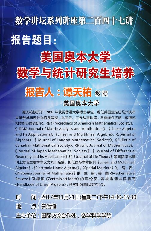 上一条:I wish you bad luck----美国奥本大学谭天佑教授 下一条:Gap Probability Distribution of the Jacobi Unitary Ensemble:An Element Treatment fromfinite to Double Scaling