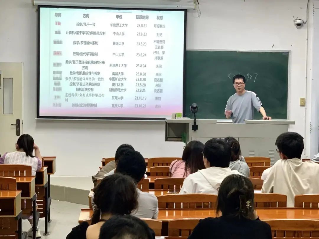 首先,成功申请到东南大学博士的伍勇刚同学为大家详细解析了申博的关键时间点、博导选择的重要性、博士申请的整体流程、博士待遇以及毕业后的相关事宜,他特别强调,在面试过程中,必须对自己的研究内容了如指掌,与导师们的沟通应自信而谦逊,遇到不熟悉的问题时,应坦诚回答,避免过度紧张。随后,考入中山大学博士的利叶斌同学详细介绍了博士研究生的报名流程、材料准备要点、研究计划书的撰写技巧以及面试中的应对策略,强调了信息收集的重要性,建议大家多渠道获取博士招聘的信息,并精准掌握自己的竞争状况。紧接着,申请到UMASS博士的郭先超同学则着重分享了他申请国外博士的经验,他建议大家首先要明确自己的读博意愿,然后及时搜集资料并规划时间线,还为大家详细列举了申请国外博士所需准备的材料清单。