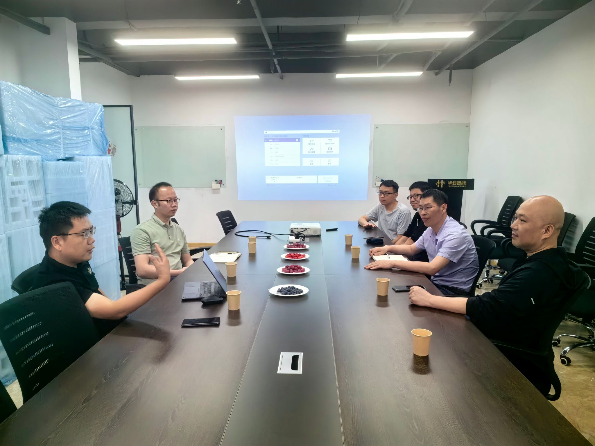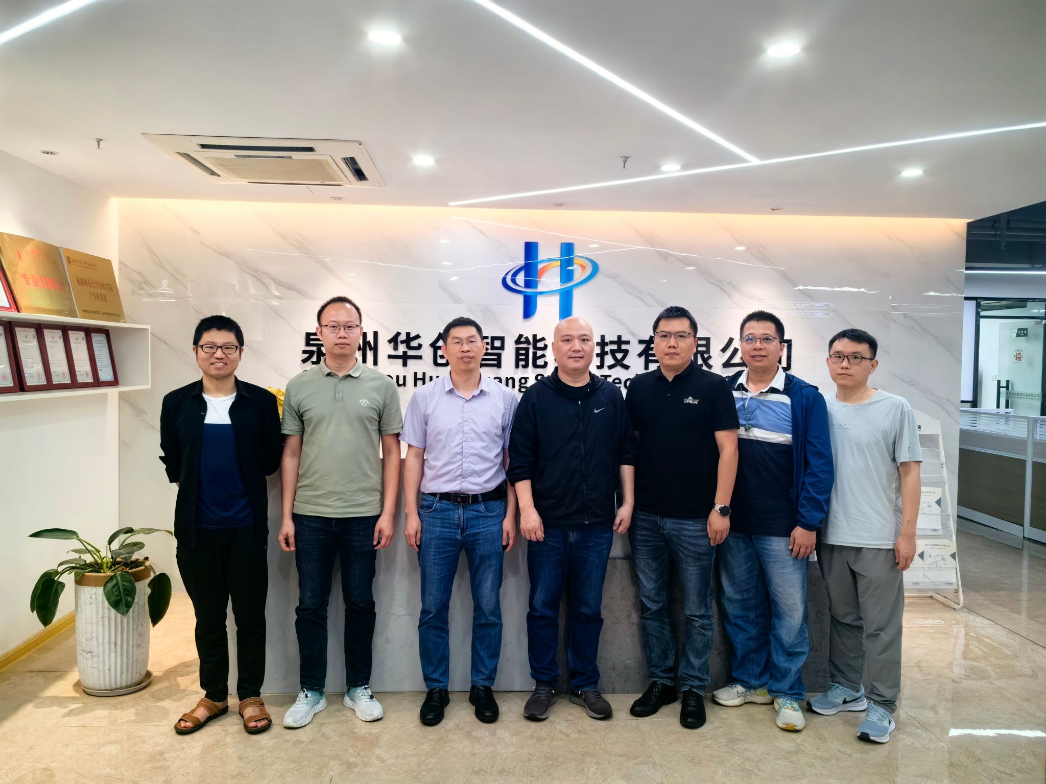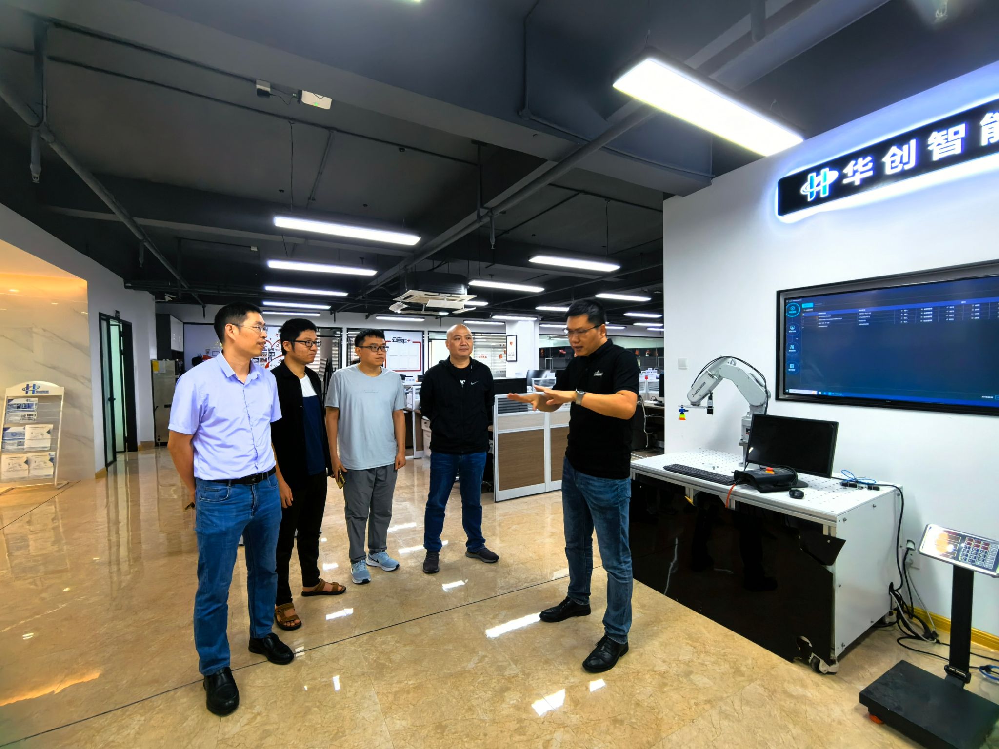 华创智能科技有限公司主要负责人刘伟斌、刘孝星对yl23411永利集团的到访表示热烈欢迎,并陪同学院领导参观了公司的产品展示。参观结束后,双方举行了座谈会议。