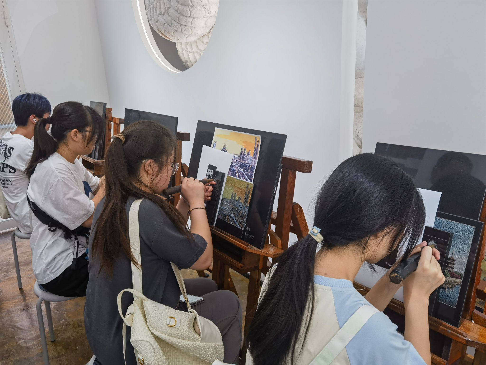 参观过程中,东艺雕刻还为同学们提供了材料和场地,让大家亲身感受和学习石影雕技艺。来自中国香港的徐怡蓝同学说:“最后的互动体验环节中,我们在吴敏达老师的指导下亲身体验了影雕。仅仅几分钟的雕刻便让我们感受到手腕处的酸痛感,这让我们都更加敬佩那些默默耕耘在雕刻艺术领域的工匠们。”来自中国香港的黄紫彦表示,“参观泉州东艺雕刻,是一次难忘的文化体验,对泉州石雕的艺术价值、文化内涵以及行业挑战有了更深入的了解,也愈发珍惜,愿意传承这份独特的文化遗产”。