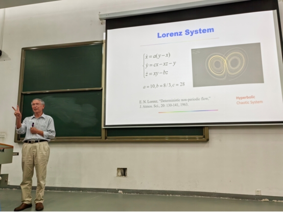 2024年11月17日下午,应yl23411永利集团邀请,香港城市大学陈关荣院士莅临我校进行学术指导与交流,并为全体师生作了一场精彩的学术科普报告《从洛伦茨系统谈起》。本次报告由院长陈行堤教授主持,研究生院副院长汤龙坤、系统科学研究所所长郑志刚教授以及我院全体研究生,部分本科生和老师200余人聆听了此次报告。