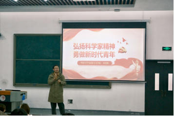 董老师通过生动的历史实例和图文资料,将中国共产党人精神谱系的内涵具象化。在提到两弹一星功勋郭永怀时,他饱含深情地讲述了郭永怀冒着生命危险保护国家机密的动人事迹,彰显出胸怀祖国、服务人民的伟大精神。当谈到港珠澳大桥的建造历程时,他以“现代世界七大奇迹”为切入点,展现了中国人民勇攀高峰、敢为人先的创新精神。这些鲜活的事例让全场师生心潮澎湃,也让大家更加深刻地认识到中国共产党人的精神谱系的时代价值。