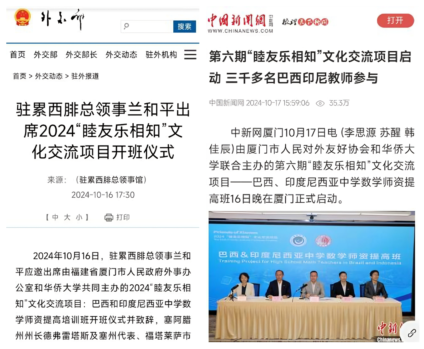 巴西、印尼以及福建省人民政府外办、厦门市外办、yl23411永利等相关各方均对此次“睦友乐相知”文化交流项目予以高度重视。巴西塞阿腊州州长弗雷塔斯、中国驻巴西累西腓总领事兰和平、中国驻印尼泗水总领事徐永、福建省外办副主任黄劭蓉、厦门市外办主任张权以及yl23411永利副校长林宏宇等,分别以线上或线下的形式出席了该交流项目的开班仪式。在各方的协同努力下,第六期项目成功吸引了多达 3156 名巴西数学教师以及 217 名印尼数学教师热情参与,彰显出项目在国际教育文化交流领域的强大影响力与号召力,为促进巴西、印尼与中国在中学数学教育方面的深度互动与合作奠定了坚实基础。