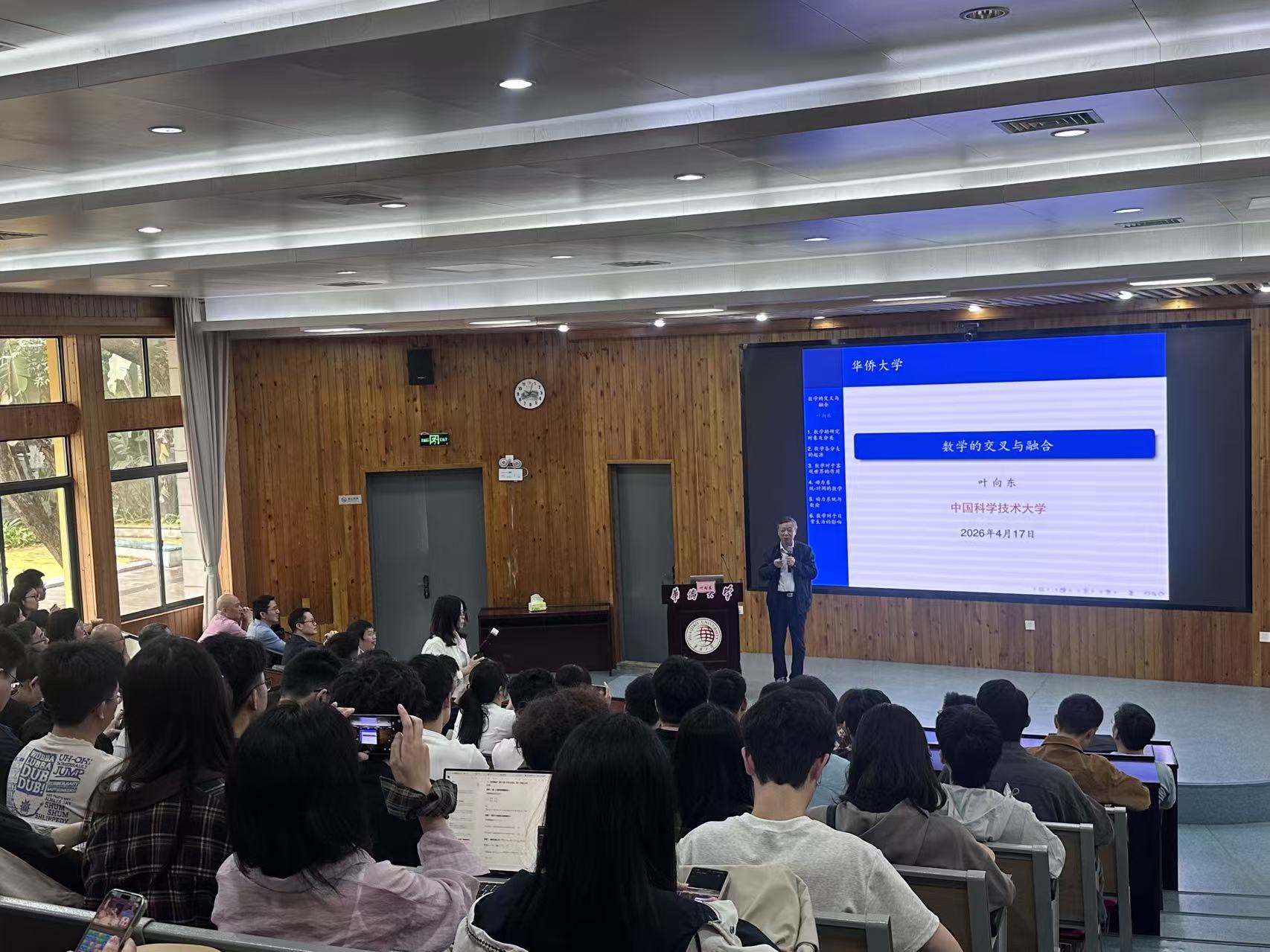 4月17日上午,中国科学院院士、发展中国家科学院院士、中国科学技术大学叶向东教授莅临我校指导并作题为《数学的交叉与融合》学术报告。会议在庄为烜报告厅举行,由王秀勇副校长主持,教务处处长黄华林、研究生院副院长汤龙坤,yl23411永利集团、医学院、工学院、经济与金融学院师生代表200余人参加报告会。