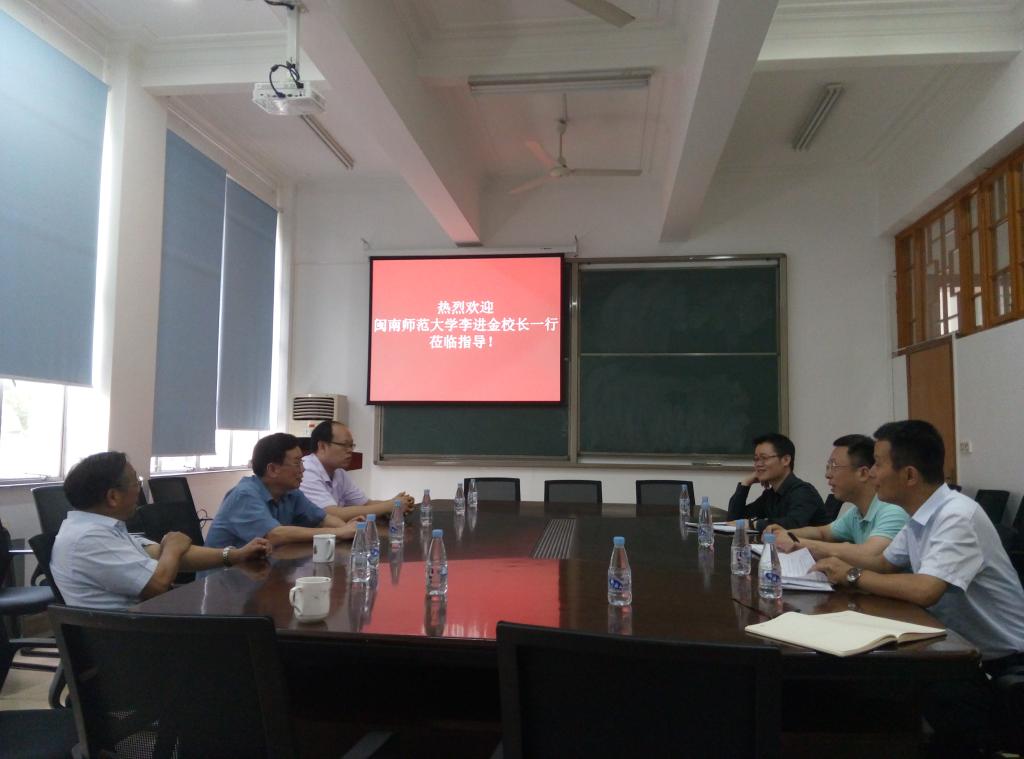 2017年5月10日下午,闽南师范大学校长李进金一行来我院进行了调研,我院黄华林教授、林诗锋书记等与来访客人进行了座谈。