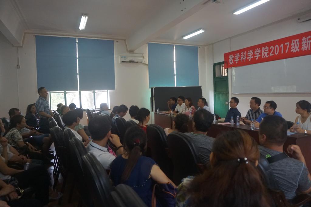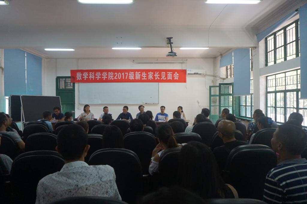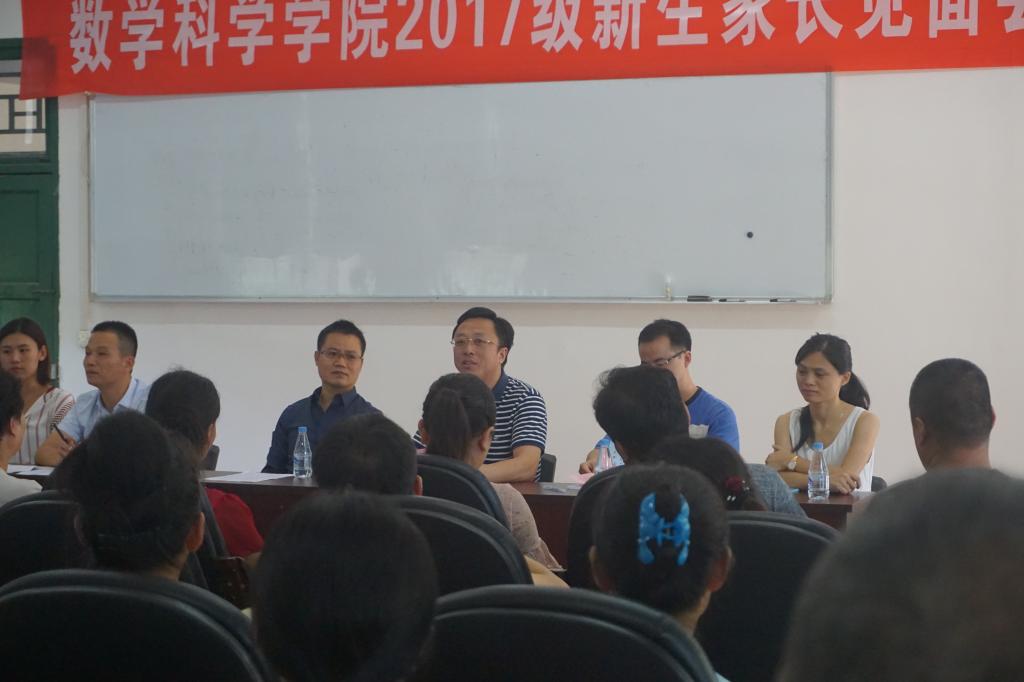 下午2点30分,yl23411永利集团本科2017年新生家长座谈会在数学学院306会议室隆重举行。yl23411永利集团院长黄华林教授,院党委书记林诗锋副教授,学院副院长黄建新副教授,辅导员刘芃杉老师,本科2017级数学与应用数学班班主任陈丽珍老师、王波老师,本科2017级信息与计算科学班班主任郑智勇老师、吴国春老师以及几十位新生家长参加了此次会议,座谈会由刘芃杉主持。