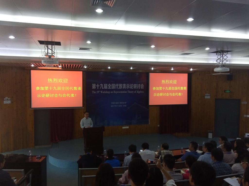 11月9日,第十九届全国代数表示论研讨会在我校庄文烜报告厅顺利举行,代数表示论会议始于1997年,每年举办一次,是同行专家交流的良好平台,旨在系统介绍代数表示论及相关领域热点的研究课题及最新进展,是面向国内的在读研究生和教师,以课程的形式系统介绍代数表示论及相关课题的基础知识和最新前沿,本次会议共由来自国家杰青基金获得者章璞教授、肖杰教授、彭联刚教授等国内50多所高校及研究院的近190名学者代表出席并参加,数学学院党委书记林诗锋、副院长黄建新出席了本次会议,会议由数学学院优秀青年教师林增强主持,数学学院院长黄华林致开幕词。