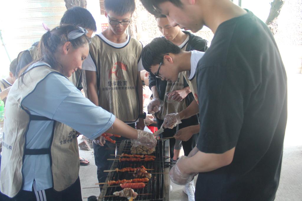 临近中午,一缕缕炊烟在沙滩飘起,这是我们在烧烤的信号。经过上午的游戏,饥肠辘辘的同学们大快朵颐。烧烤在轻松愉快的气氛里进行。