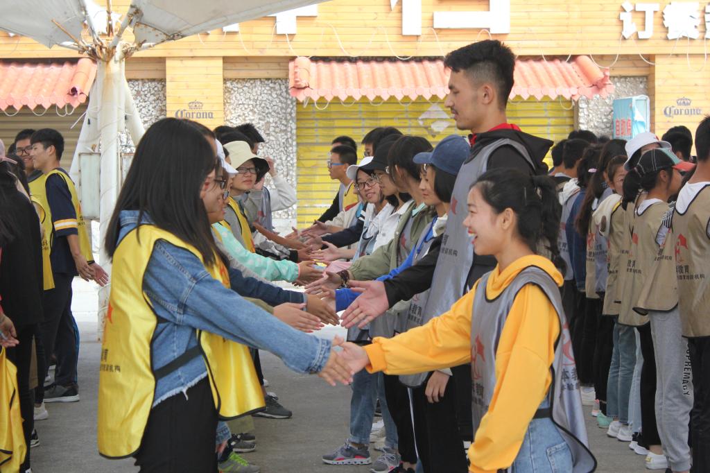上午天气晴朗,活动序幕正式拉开,首先建立团队文化,分队、选队长、排队形以及创作团队的logo,进行展示。团队展示阶段使参训人员在迅速打破隔膜,融入团队。在进行握手、拥抱等破冰游戏之后,大家渐渐熟络起来。一系列的游戏很好地培养了团队凝聚力,迅速让大家打成一片。