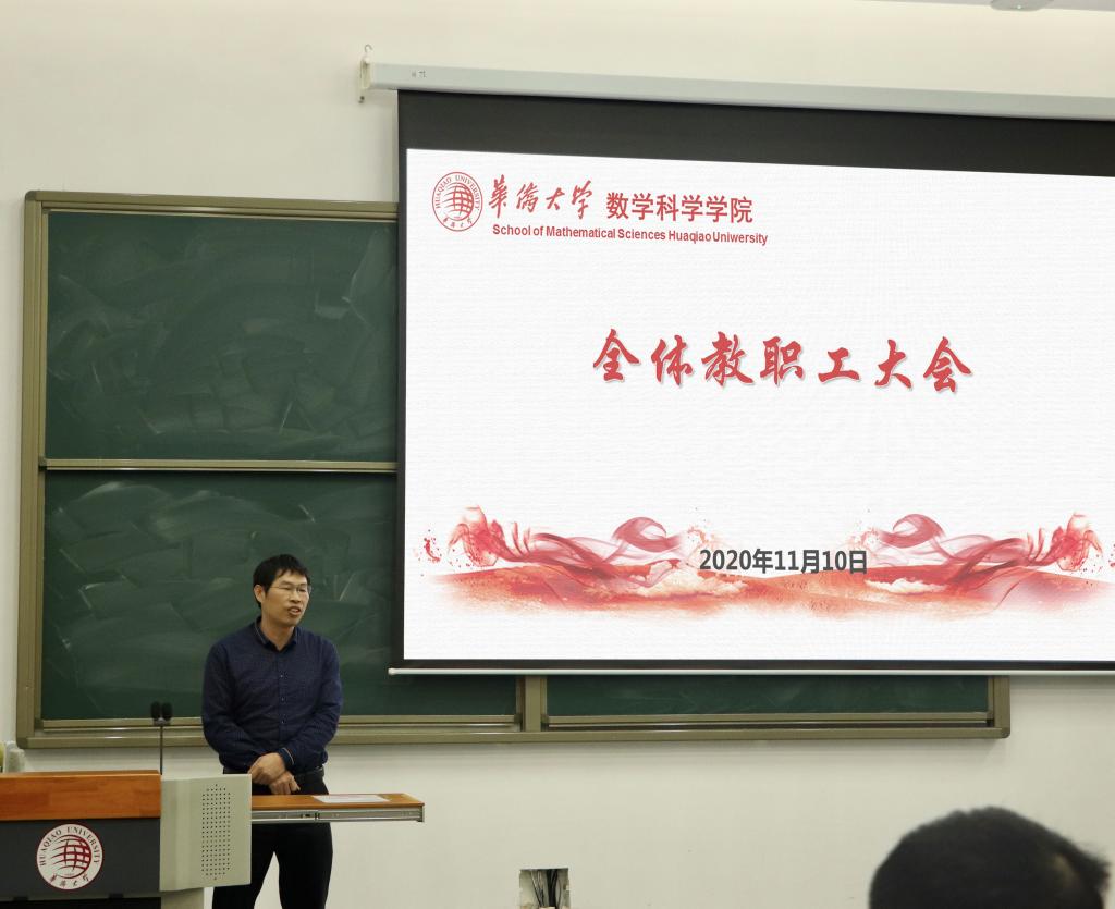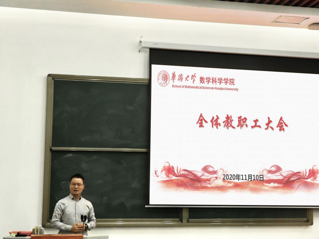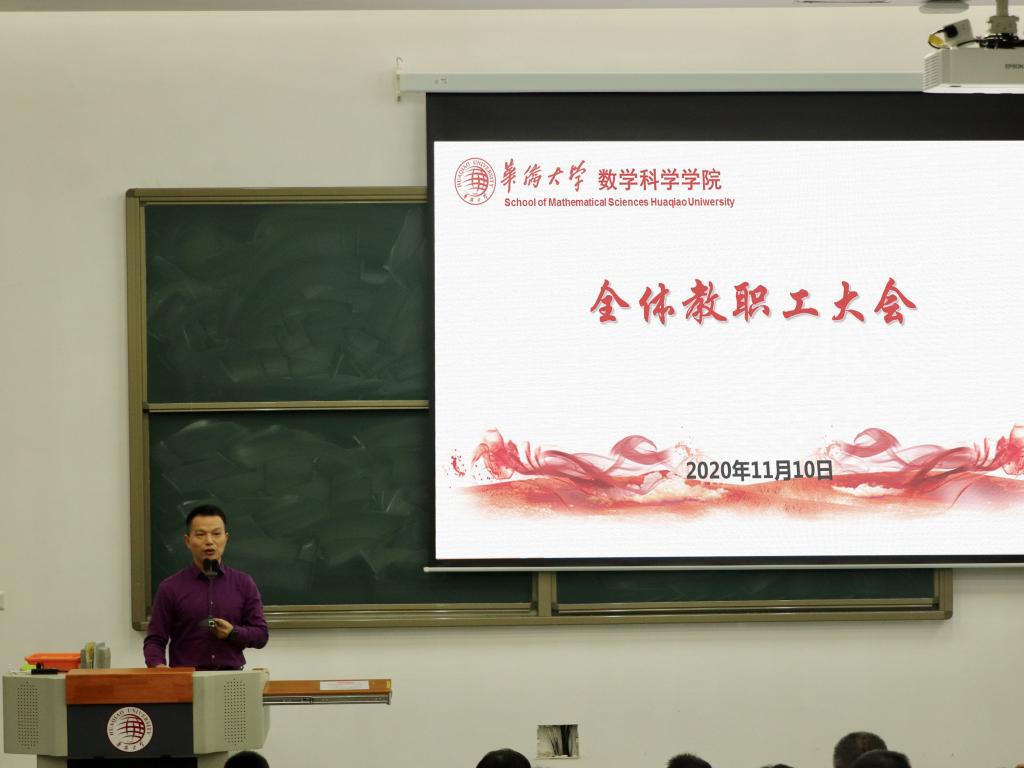 11月10下午,yl23411永利集团在数学楼梯形教室召开了2020-2021学年第一次教工全体大会。根据会议议程,学院领导分别从各自分管的工作范畴对学院工作进行了说明和部署。