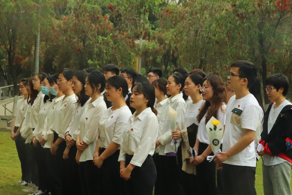 伴随着清晨的雨露,同学们胸前党徽与校徽显得格外显眼。我院百余名师生肃立在廖承志铜像前,缅怀创校校长廖承志先生。全体肃立、国歌奏响、默哀一分钟,随后,辅导员陈舜敏与学生代表孔小雪追忆廖承志先生提议创办yl23411永利,并为学校的建设和发展殚精竭虑、倾注心血的历史。深切缅怀这位对中国人民革命、建设、改革事业和祖国统一大业做出不可磨灭功绩的革命先烈。最后,大家整齐列队,依次走向廖公铜像,瞻仰这位伟人,有序地献上小白花,以寄哀思。而在廖公远眺的方向,数院学子也正在为著名爱国侨领陈嘉庚、许东亮敬献一捧鲜花……