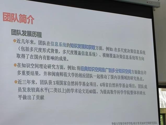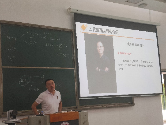 其次,代数团队导师介绍。老师为我们介绍了团队的具体成员以及主要的研究内容,为我们讲述了代数学的内容、代数学的优势以及团队在代数学领域取得的重大成果。