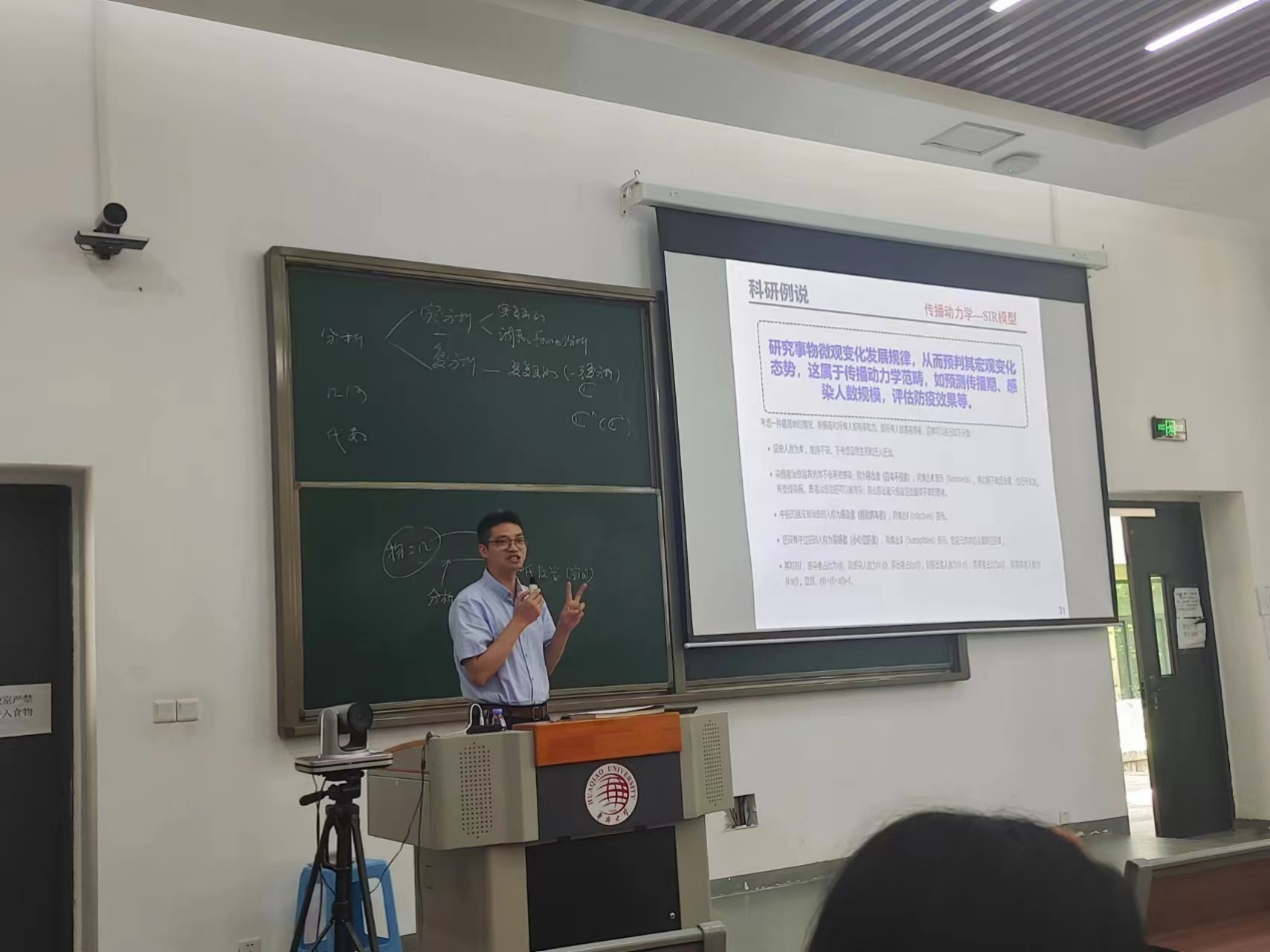 汪东树教授讲解了微分方程与动力系统。他以生动有趣的“科研例说”,将微分方程与动力系统的研究理念娓娓道来:“研究事物微观变化发展规律,从而预判其宏观变化态势”。通过这个例子,帮助同学们建立了一个直观的概念框架,使抽象的数学概念变得通俗易懂。