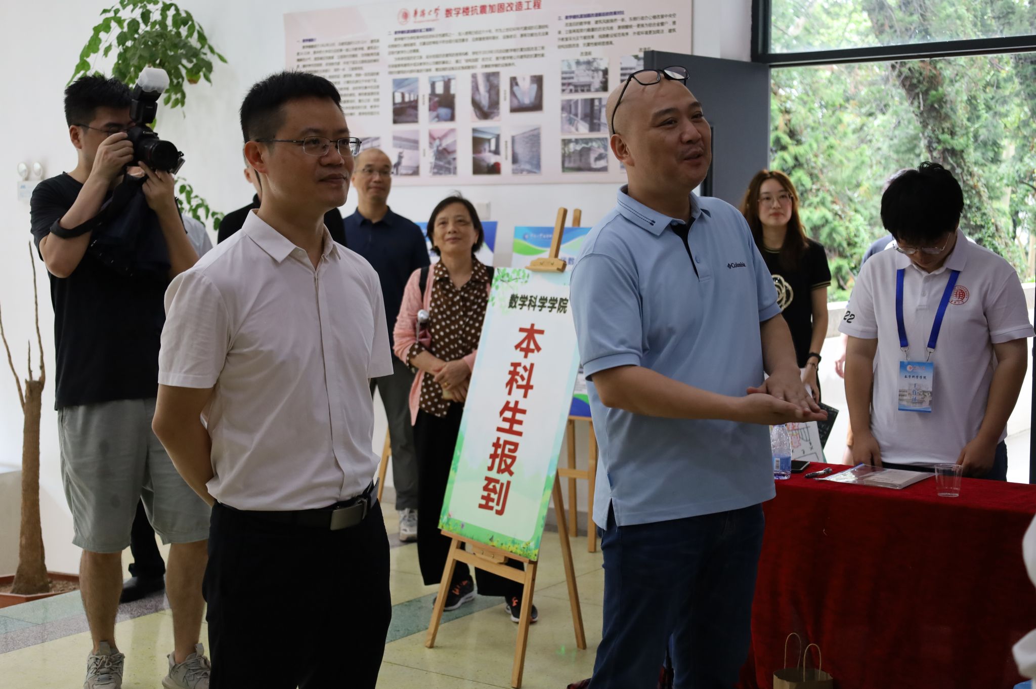 早上10点,校长吴剑平、学院院长黄华林各机关部处领导一行莅临学院视察迎新工作,与新生家长亲切交谈,并表扬我院迎新工作有着优良的传统,迎新工作井然有序。