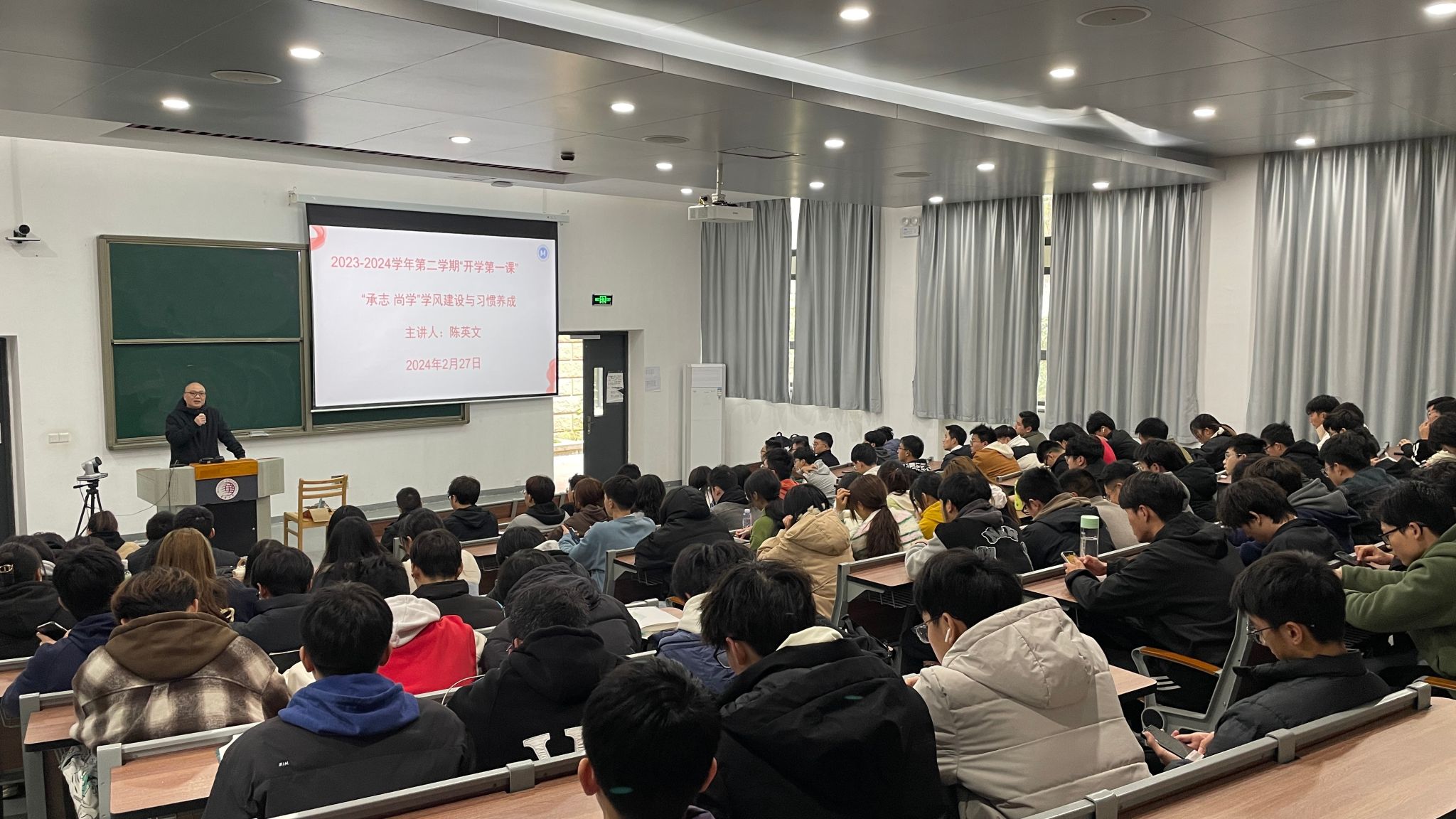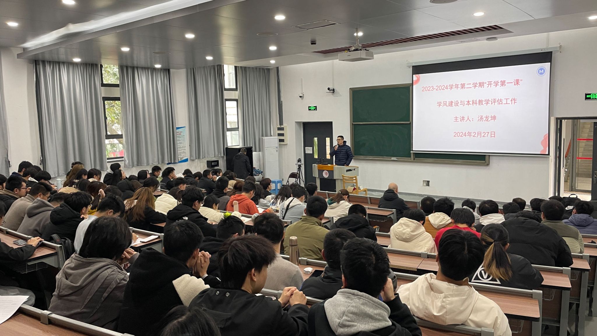 yl23411永利集团在新学期伊始便迅速进入了紧张而有序的学习氛围中。2月27日下午,学院党委书记陈英文、副院长汤龙坤给2023级本科生开讲“开学第一课”,结合本学期本科教育教学评估工作,开展“承志·尚学”学风建设动员。