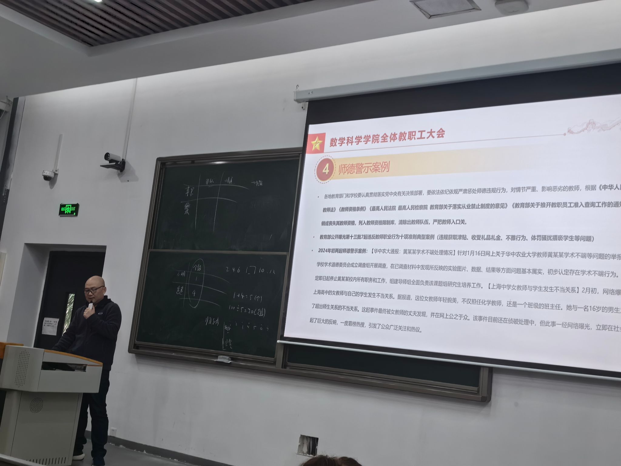 陈英文结合以上近期师德师风反面案例,深刻阐述了师德师风建设的重要性。他指出,教师的师德师风不仅关系到学生的成长和未来,也关系到整个社会的文明程度和道德水平。因此,加强师德师风建设是每一位教师的责任和使命。他强调抓好师德师风建设,就不能忽视日常纪律教育,要防微杜渐,全体教师要严格遵守职业道德规范,自觉维护教师形象和声誉,杜绝酒驾醉驾等违纪违法行为,将师德师风工作融入日常教学生活之中。