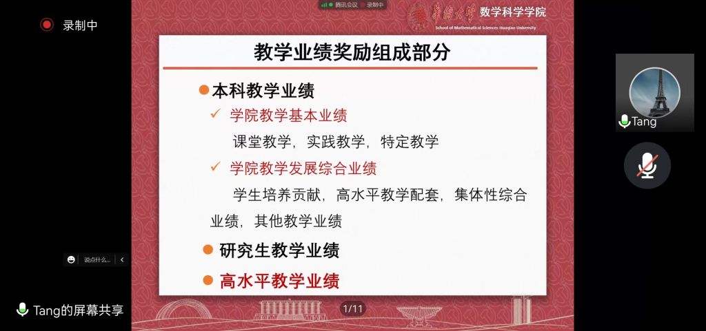 副院长陈行堤和汤龙坤分别围绕科研、教学和服务等方面就本年度分配的细则进行逐一解读和答疑。其后,超过92%的与会者同意通过了《2021-2022学年yl23411永利集团业绩考核奖励细则》。