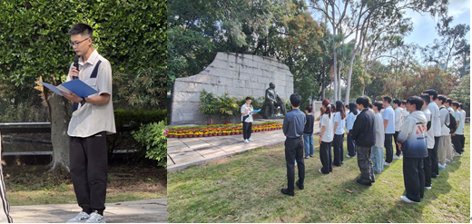 随着各项环节有序完成,主持人宣布本次清明纪念活动圆满礼成,全体师生有序瞻仰廖承志先生铜像后依次离场。