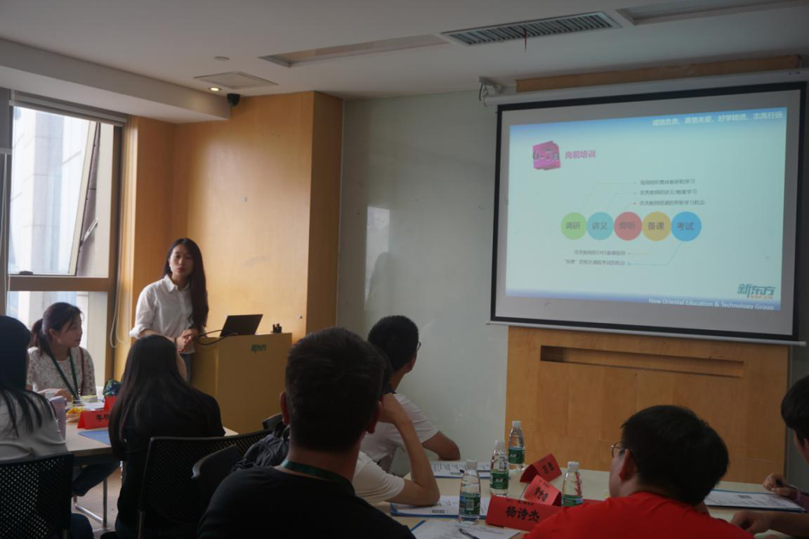 首先,优能总监杨伟国老师致辞,为同学们介绍了企业的工作环境和工作体系等。随后,培训发展中心主管李清松老师从新东方的历史以及未来的发展方向等多个方面,向大家展示了新东方如何一步步发展壮大,成为一家涵盖教育科技等各个方面的巨头。