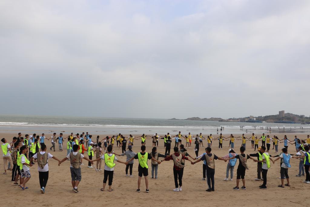 中午新生们开始户外海滩自主烧烤,在欢声笑语中补充体力。下午,新生开始了九人十足和激情节拍游戏,虽然跌跌撞撞,但最后所有队伍都顺利完成任务。新生们在经过一个小时的自由活动游玩之后启程返回学校。