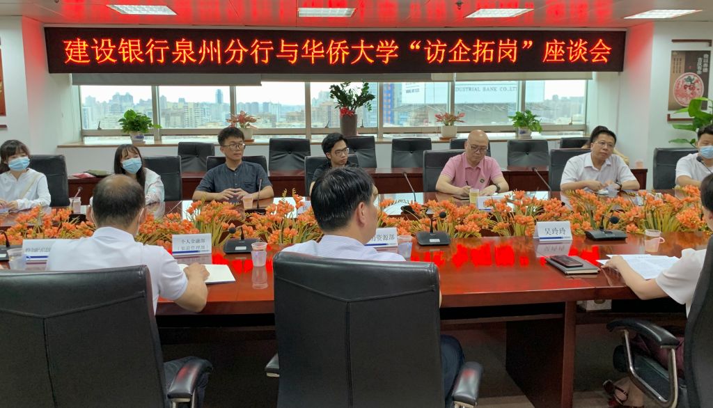当天下午,中国建设银行股份有限公司泉州分行副行长吴玲玲、洛江分行行长张华锋等在泉州建行大楼热情接待我院参访团的到来,就学生就业、党建服务、人才培养、科研合作及支部共建等内容进行了深入交流。陈英文代表学院向中国建设银行股份有限公司泉州分行对我院学生就业工作的支持表示感谢,随后围绕学校和学院的基本情况、建设发展、人才培养、学科科研、师资力量等方面做了详细介绍,并对未来双方合作模式和方向等提出构想,希望进一步拓宽合作的广度和深度。吴玲玲副行长希望通过支部共建、拔尖人才培养等方面与中国建设银行股份有限公司省分行深化合作,进一步推动学生高质量就业。据悉,目前我校共有49名校友在建设银行泉州分行工作.