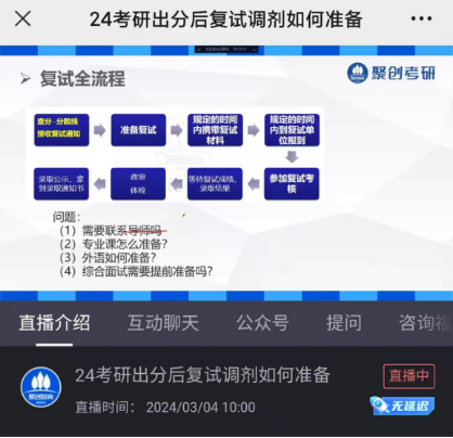 廖老师从考研复试准备、调剂信息收集、面试综合、复试专业课复习等方面进行详细的介绍。他强调了复试的重要性和难度,指出了复试中常见的问题和误区,建议学生要提前了解招生单位的复试规则和流程,做好充分的准备,尤其是要加强专业知识和英语能力的复习。同时,他从考研调剂的必要性、可行性、操作方法等方面进行了系统的分析,解释了调剂的含义和目的,分析了调剂的优势和风险,建议学生要根据自身的情况和意愿,合理选择调剂的学校和专业,不要盲目跟风或放弃。他还介绍了调剂的具体步骤和注意事项,如如何查找和申请调剂信息、如何撰写和提交调剂申请材料、如何与招生单位和导师沟通等。