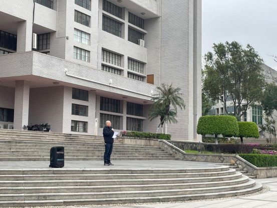 升旗仪式结束后,陈英文老师发表了热情洋溢的讲话。他表示,2024年政府工作报告提到大力发展数字教育,作为yl23411永利集团的师生,我们要深入学习,将国家的战略部署转化为推动学院发展的强大动力,以更加开放的心态,积极融入国际教育的大潮,养成优良的学风,提升创新精神和综合素质。最后,陈英文老师强调,三月是雷锋月,在这个弘扬志愿精神、传承中华美德的重要时刻,我们要以雷锋同志为榜样,学习他无私奉献、助人为乐的精神,将这种精神内化于心、外化于行,积极参与志愿服务活动,帮助他人,传递正能量,让雷锋精神在我们的华园中发扬光大。