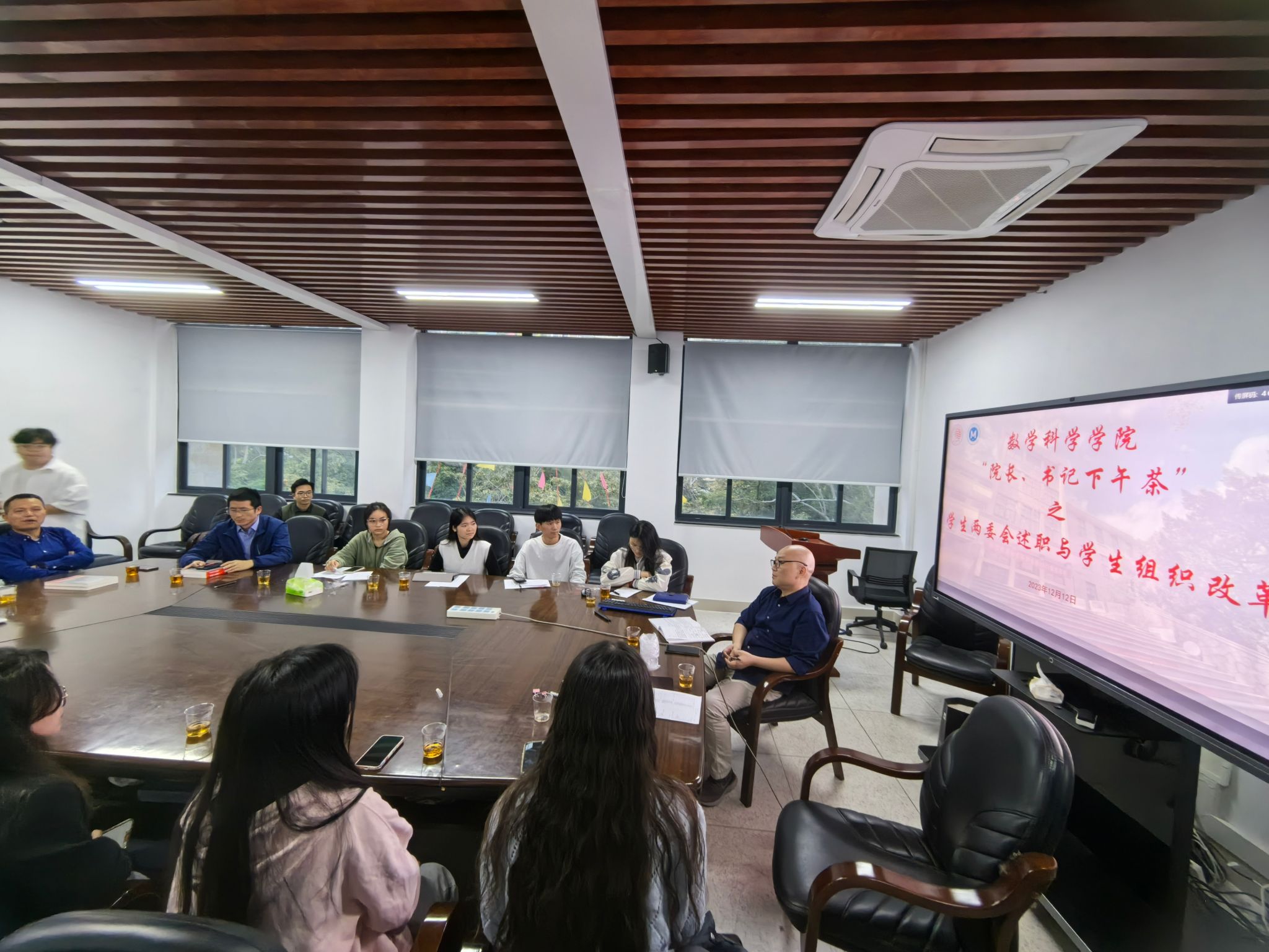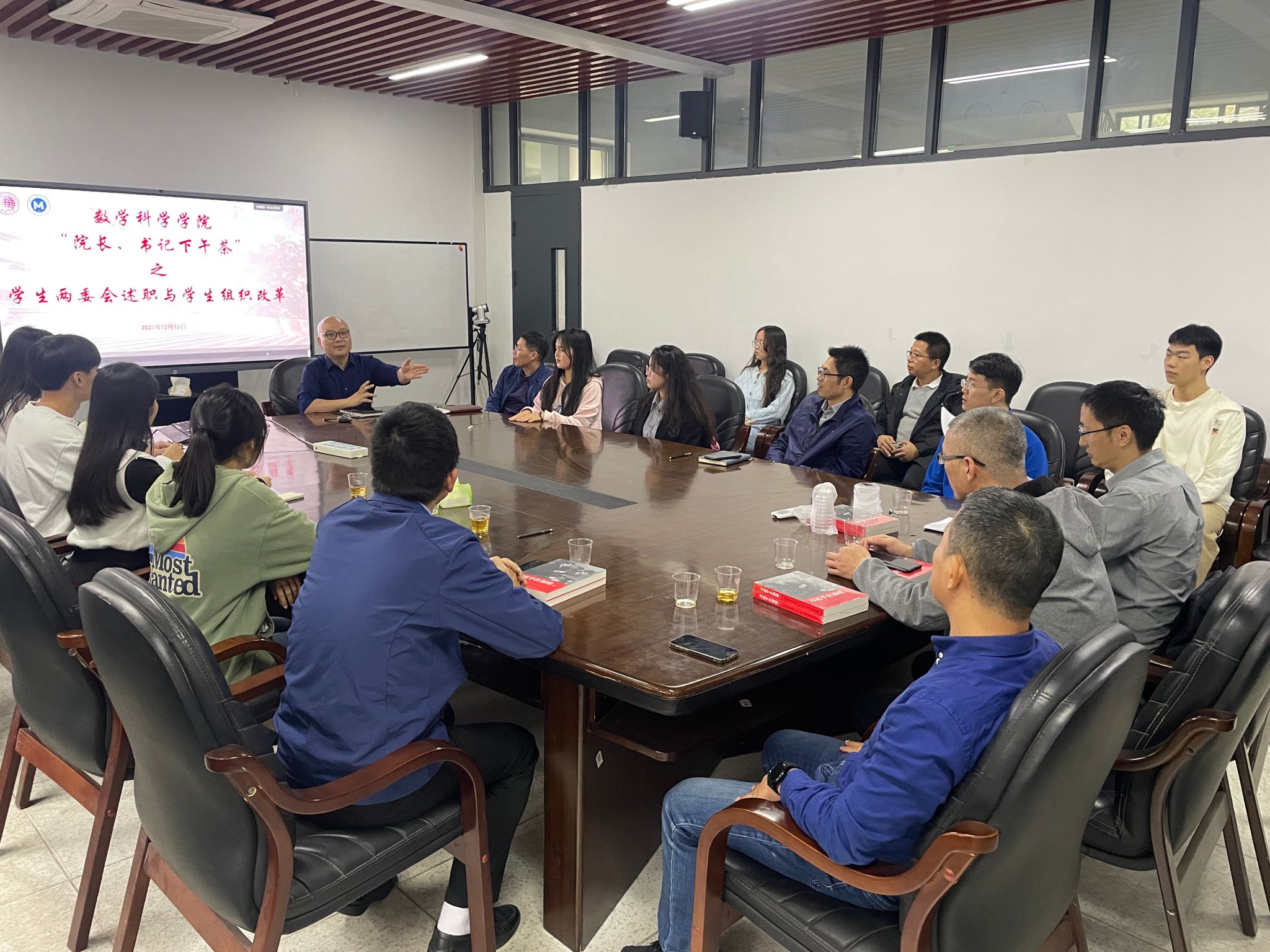 12月12日,本学期第二次“院长、书记下午茶”邀请了院研究生会、学生会主席团成员、部分负责人代表与学院全体党委委员一起回顾2023年学生工作的开展情况,并共同规划展望2024年工作。