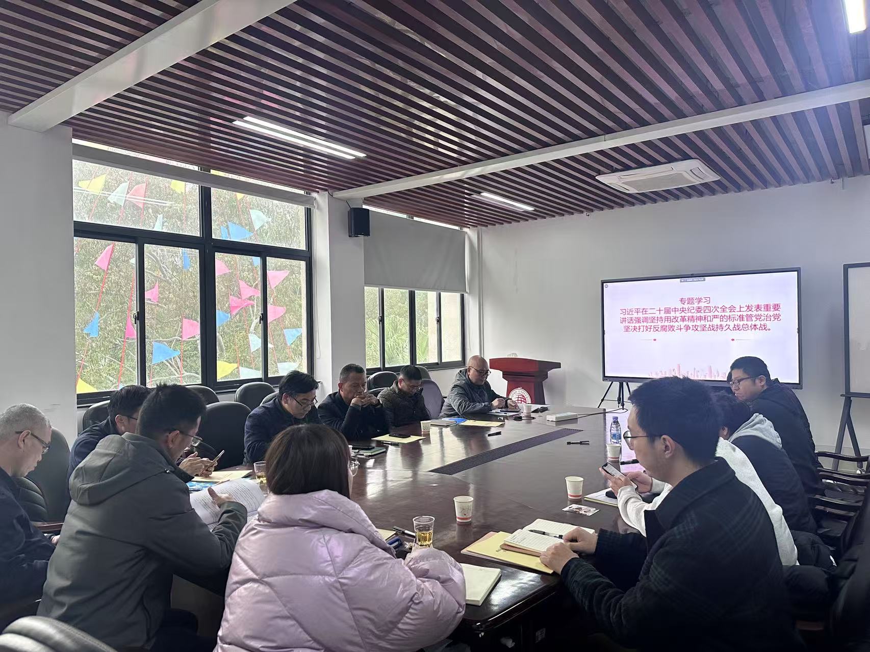 陈英文总结发言时强调:要提高政治站位,深刻领会全面从严治党与反腐败斗争的时代意义,牢记党纪学习教育常态化;要聚焦重点领域,特别是师德师风建设和考风考纪等方面,时刻履行作为一名高校教师的基本职责,做好教学科研与服务管理;要压实主体责任,构建全面从严治党的工作格局,中心组成员和学院领导班长成员更要凝聚发展合力,用高质量党建引领学院高质量发展。