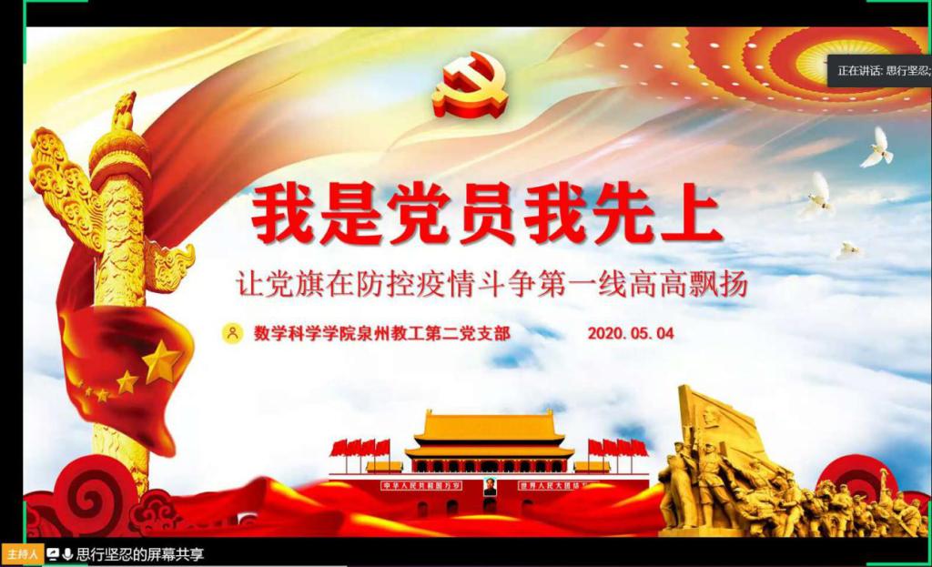 5月4日晚,yl23411永利集团泉州教工第二党支部在腾讯会议平台开展“共抗疫情,发挥党员先锋模范作用”主题党课。支部全体党员参与会议,会议由支部书记翁智峰主持。