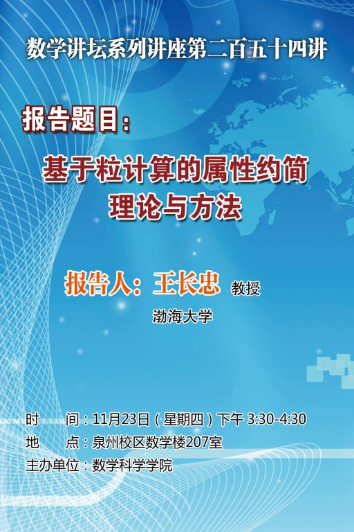 上一条:扭结,手性与HOMFLY多项式----厦门大学张福基教授 下一条:A Laplace operator on complex Finsler manifolds----厦门大学邱春晖教授,博导