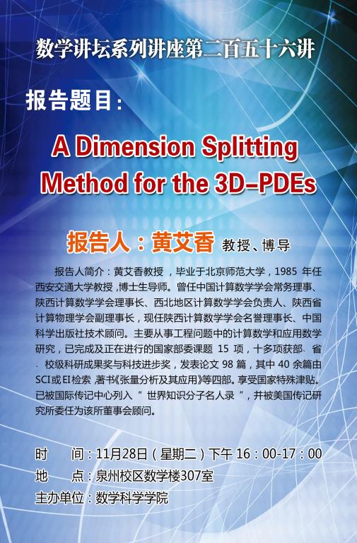 上一条:若干重大装备中的应用数学研究(含如何进入科学研究)----西安交通大学黄艾香教授 下一条:扭结,手性与HOMFLY多项式----厦门大学张福基教授
