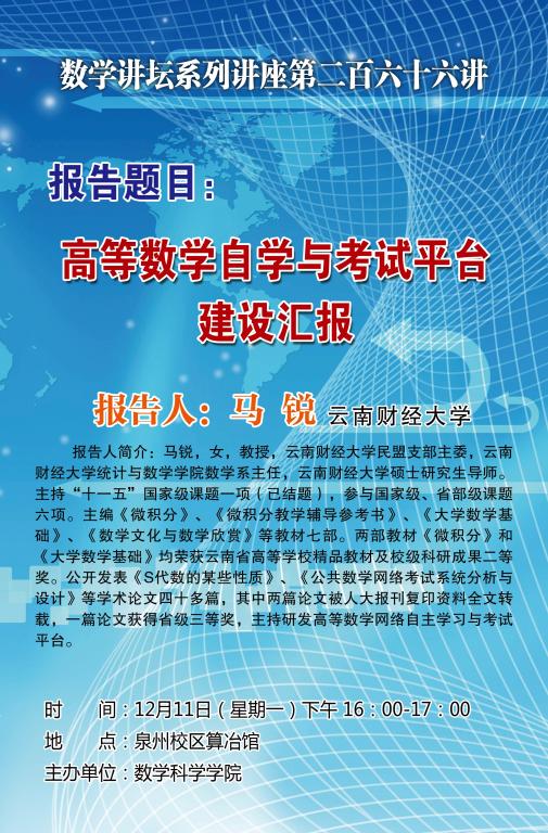 上一条:On several Peakon, Toda lattices and the associated spectral problems---中国科学院数学与系统科学研究院常向科副研究员 下一条:Unconditional and optimal error estimate of compact finite difference method for the nonlinear Schrödinger equation in high dimensions----南京信息工程大学王廷春副教授