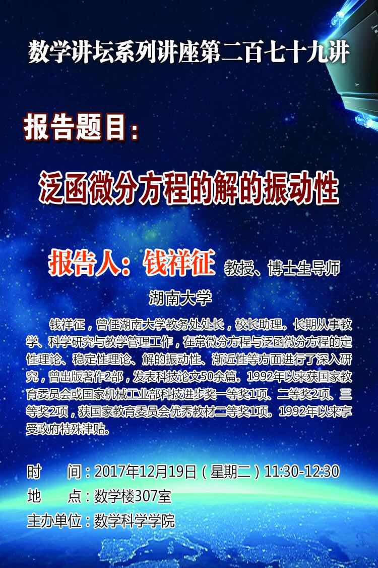 上一条:Numerical Methods for 2D and 3D Fractional Convection-Diffusion Differential Equations---巴西巴拉那联邦大学袁锦昀教授(巴西科学院院士) 下一条:泛函微分方程和差分方程的稳定性理论----湖南大学王志成教授