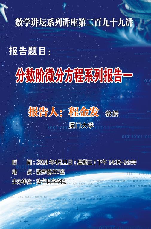 上一条:分数阶微分方程系列报告二----厦门大学程金发教授 下一条:欧氏空间之间的满射、重积分换元公式和Brouwer不动点定理----厦门大学刘轼波教授
